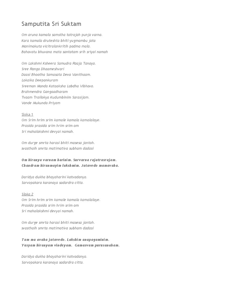 Pdf Sri Suktam Lyrics Pdf Download Pdffile